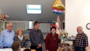 Das schöne SCV-Clubhaus am Liblarer See war am Sonntag, 12. Januar, mehr als übervoll, um die beiden ‚guten Seelen‘ des Vereins, Ute und Hubert Leufgen, nach mehr als 10jährigem Engagement für den Club entsprechend zu verabschieden. Stets zuverlässig, kompetent und immer freundlich, betreuten sie verantwortlich die ‚Kombüse‘ sowie das ‚Clubgelände‘ mit allen Geräten und Einrichtungen, zur Zufriedenheit des Vorstandes sowie aller Mitglieder. Selbst wenn sich das Wetter am See – was für diese Breiten ja nicht ungewöhnlich ist – nicht immer freundlich zeigte, waren Ute und Hubert Leufgen stets ‚Gute-Laune-Garanten‘. In einer launigen Laudatio würdigte der SC-Vorsitzende, Stephan Weiser, ihr unermüdliches Engagement. Ein lang anhaltender Applaus zeigte die Wertschätzung der Anwesenden. Auf Einladung der beiden ‚Ehemaligen‘ folgte der gemütliche Teil mit dem Genuß von in der Vergangenheit lieb gewonnenen und stets geschätzten Kuchen und Schmankerln vom Bufett.